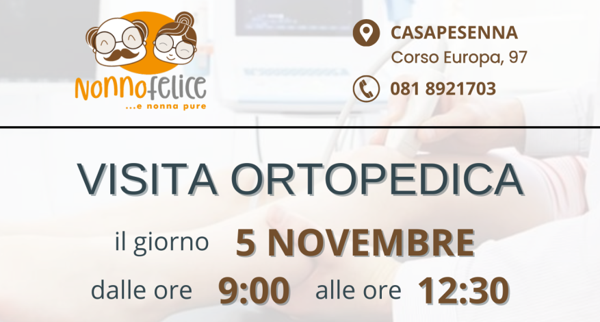 Il 5 Novembre dalle ore 9:00 fino alle 12:30 ti aspettiamo per una visita ortopedica presso Nonno Felice a Casapesenna, Corso Europa 97.